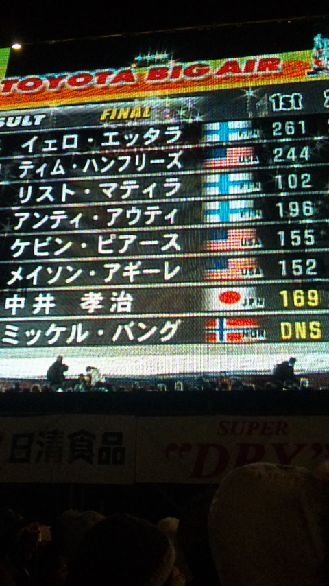 BIG AIR![]() ![]() まず移動時間がハンパない ![]() なんたって地下鉄南北線の端っこから端っこまでかかったんだから(笑) 真駒内セキスイハイムスタジアム ![]() に到着した時にはSERVICE ACE終わっちゃってた ![]() しかもこの日の日中はとんでもなく暖かくて雪なんてべっちゃべちゃに溶けちゃってるから所々雪の中に水たまり多発 ![]() あっという間にフリッジムートン滲みちゃって靴下も濡れちゃって足元めちゃくちゃ冷えて大変なことになったわ ![]() 軽く会場歩いて現地視察(笑) やっぱり野外フェス大好き ![]() ![]() そして初9mm ![]() ![]() 今まで9mm見たことなくてめっちゃくちゃ楽しみにしてたから超嬉しかったなぁ ![]() ![]() Keywordでいきなりスイッチ入ったわ ![]() ![]() あんなに激しいとは思わなかったわww WanderlandもLiving Dying Messageで飛んだりしてると雪の上だからつるっつるに凍っちゃってめちゃくちゃ滑ったわ ![]() Discommunicationがラストだったのにまた上がったわ ![]() ![]() でも超弾けたおかげで寒さと足の冷えとブーツの湿っぽさも一気に気にならなくなったね ![]() ![]() 後悔してるのは柵の中行けばよかった… ![]() ![]() でも楽しかった ![]() ![]() その後スープと鳥串食べて ![]() あんなにあったかくて晴れてたのがいつの間にか本来の寒さと暗さになってましたww そして10-FEET直行 ![]() NAOKI側の前2列目でスタンバイ ![]() 強風で競技のスタートがずっと遅れてて競技開始前に10-FEETのライブスタート ![]() 久しぶりのモッシュの嵐で楽しかったわ(笑) しかも好きなgoes onとかU聴けて超嬉しかったなぁ ![]() ![]() でも9mmであんなに暑くなったのにニットキャップに手袋したまんまで余計暑かったわww 弾けすぎて終わった後暑さと寒さで感覚にぶったわ ![]() 終わった後ようやく競技開始 ![]() 競技見合わせによりルールが若干変更されちゃったけど、予備日になったりしなくて良かったよ ![]() 史上最大のジャンプ台超高ッww 近くで見た様子w デジカメの電池充電し忘れたせいでデジカメの写メはこれだけ ![]() 選手紹介の後、腹ごしらえにカクテルパートナーカシオレにカップヌードルww 屋外で食べるカップヌードルとか超うまかったw やっぱ、あーゆーのって家で食べるものじゃなくて非常用とか外で食べるもんだよね ![]() チーズ&ガーリックうまかったww その後戻って予選 ![]() でもハプニング ![]() 日本人選手で一番気になってた山本真丈さんがジャンプミスで右肩から強打して転倒… グッチさんは『右手が気になりますけど』って右手どころじゃないでしょ ![]() どうなったかホント心配… その後競技再開 ![]() やっぱり去年準優勝のリストが予選1位で通過 ![]() アウティとケビンも ![]() 優勝したイェロのダブルバックフリップが1番印象に残ってるよw てか表彰式のとき、カッチがいた ![]() ![]() NO MATTER BOARDのMCのカッチが ![]() しかもアウティと並んで(笑) 最高の2ショット撮り逃した ![]() ブーツべちゃべちゃになったり移動時間長かったり大変だけど、BIG AIRがこんなに楽しいイベントだったなんてもっと早く行けばよかった ![]() さて、今日からまた仕事 ![]() ペニーレーンデートル、夢チカLIVE SPまでガンバろ ![]() ![]() PR